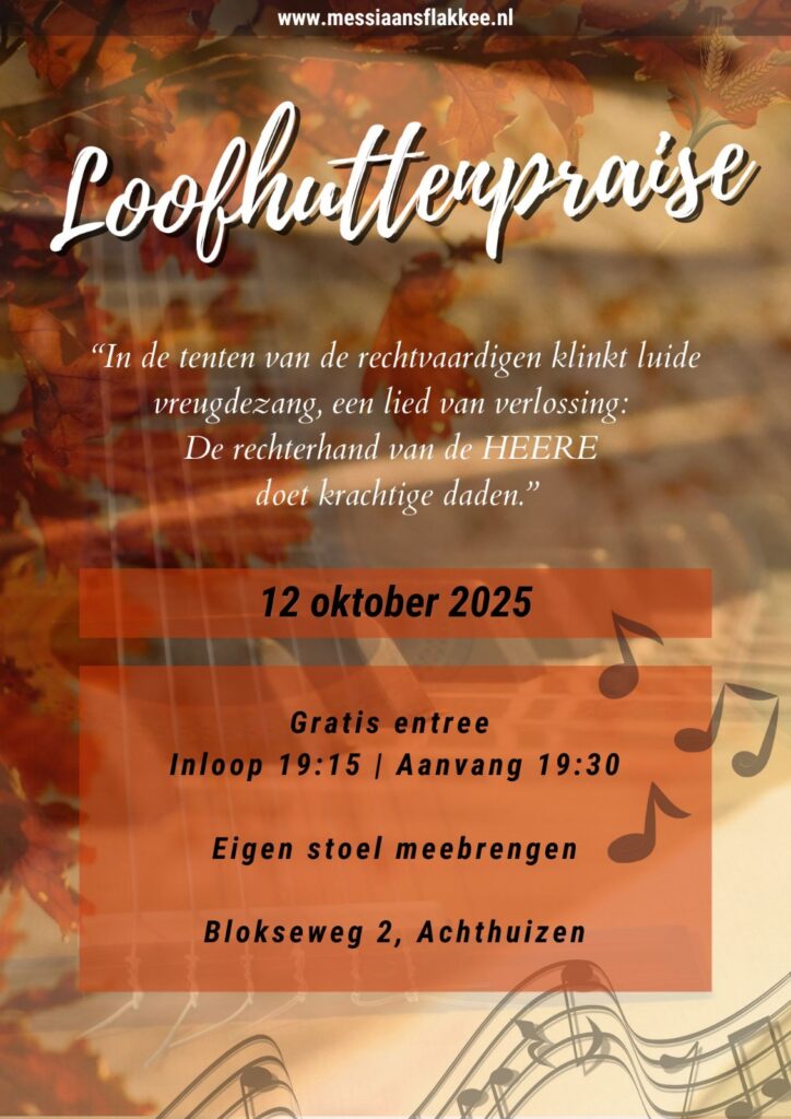 Elke week is er een dienst in gebouw ‘de Bron’ te Oude Tonge. De dienst begint om 13.00 uur en is gevuld met lofprijs, aanbidding, onderwijs uit het Woord, gebed en getuigenissen. U bent van harte welkom een dienst bij te wonen! Een dienst duurt ongeveer twee uur. Na de lofprijs kunnen de kinderen t/m 3 jaar naar de creche en de kinderen tussen 4 en 8 jaar naar de sabbatschool. Na de dienst eten en drinken we met elkaar. Elke 1e sabbat van de nieuwe maan houden we de maaltijd van de Heere.