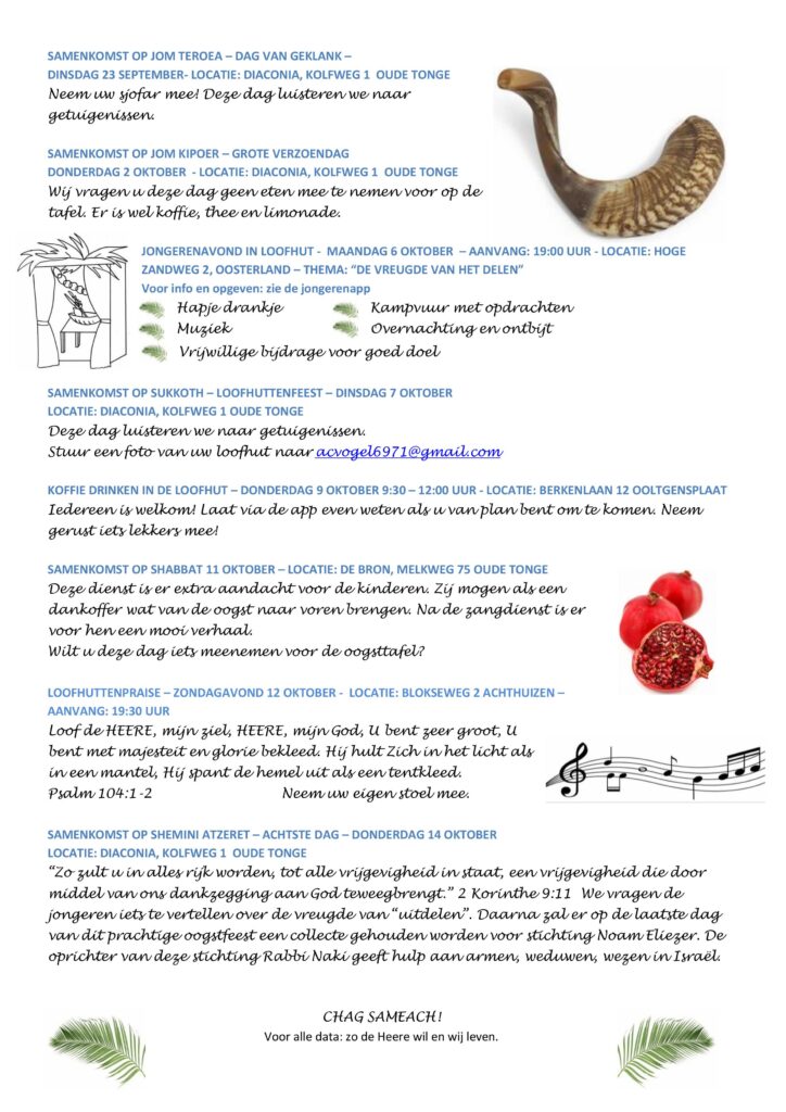 Agenda bijbelse feesten in het najaar